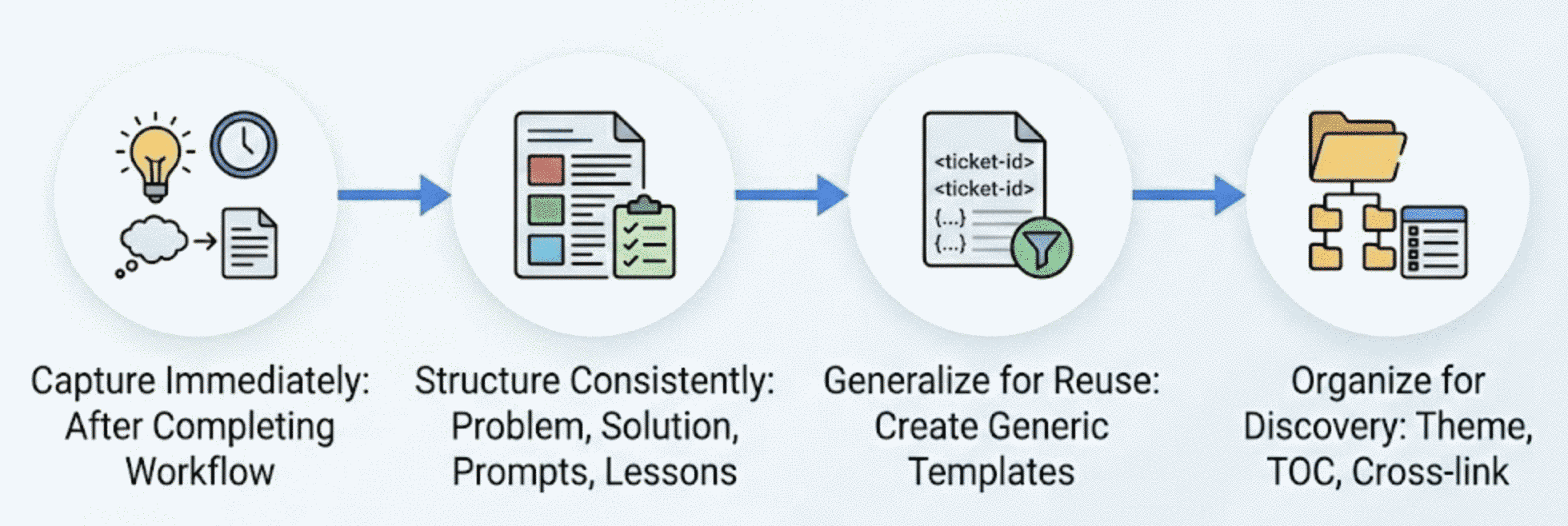 <ticket-id>or<project-name> - Include the prompts: The exact wording that worked is often more valuable than the explanation
